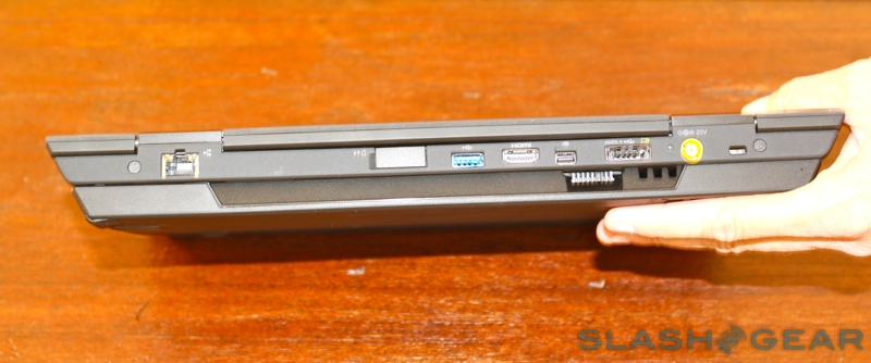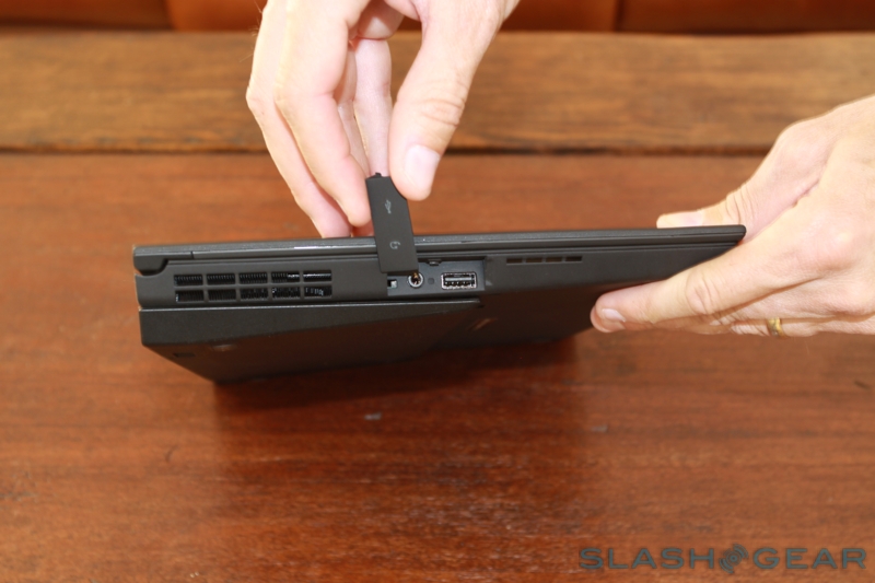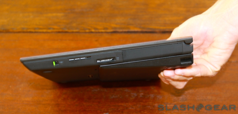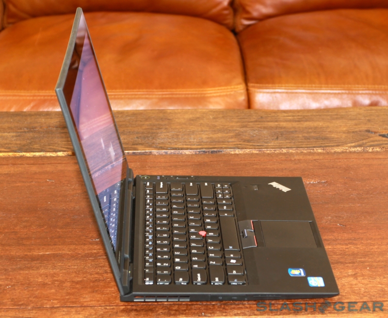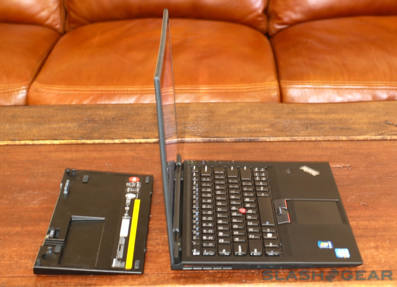 The X1 in the SlashGear test was running Windows 7 Professional 32-bit, (with 64-bit also available). The processor was a Sandy Bridge Intel dual-core i5 at 2.50 GHz and 1333 MHz FSB. (Available up to 2.70 GHz Intel i7). There was 4 GB of DDR3 1333MHz RAM in one DIMM slot, so not a lot of expansion room, (up to 8 GB RAM from factory). Although Solid State Drives up to 160 GB are available, the SlashGear test model had a 320 GB Hitachi 7200 RPM SATA II drive with 16 MB buffer. The hard drive has built in Bulk Data Encryption (BDE) for customizing who has access to what data. The BDE combined with the fingerprint reader make an extremely secure and relatively pain-free way to encrypt sensitive data in case Big Brother, or The Boss, is watching (The job Boss, not Springsteen).