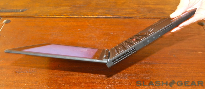 The Gorilla Glass LCD display was a winner. Great colors and crisp text. Even outside it was still useable. The X1 has real bad glare outside, but not as bad as a tablet or other device with the same glass, and the screen didn't get as washed out either. The only drawback to the screen isn't actually the screen at all, It was the integrated low-light sensitive HD webcam. Overall the camera was disappointing. Snapshots were grainy and adjusting the user settings didn't improve image quality that much. A decent webcam, but did not meet the SlashGear standard for HD. The best performance from the webcam was in low-light conditions. If there was a bright light or a bright window in the background then the whole image got streaky or very bad glare. The bright green led indicator was one of the good points, so at least you knew when you were on camera.