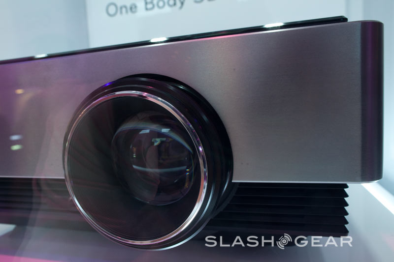 LG's 2010 LCD range wasn't the only place 3D cropped up from the company. SlashGear stopped by to take a look at their new 3D projector, the LG CF3D, which can produce a 3D image from a single projector rather than requiring separate left and right images. What's really interesting is the price: unlike previous systems, LG's have a consumer focus and will be priced at around $10,000.