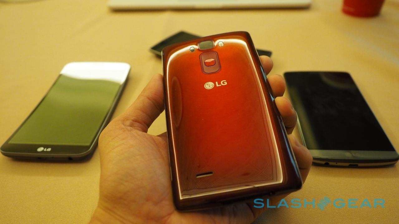 In fact, at 149.1 x 75.3 x 7.1-9.4 mm and 152g it'll even make the iPhone 6 Plus feel like it needs to go on a diet. The newly enhanced design offers a the same curve but enhanced to look more modern. The improved self-healing rear panel treatment is much faster – so much faster that, during LG's demo, you can barely see the scratches. According to LG mobile chief Dr. Woo, the self-healing process should be done within 10-seconds.