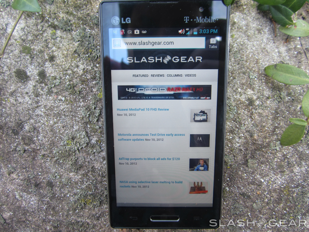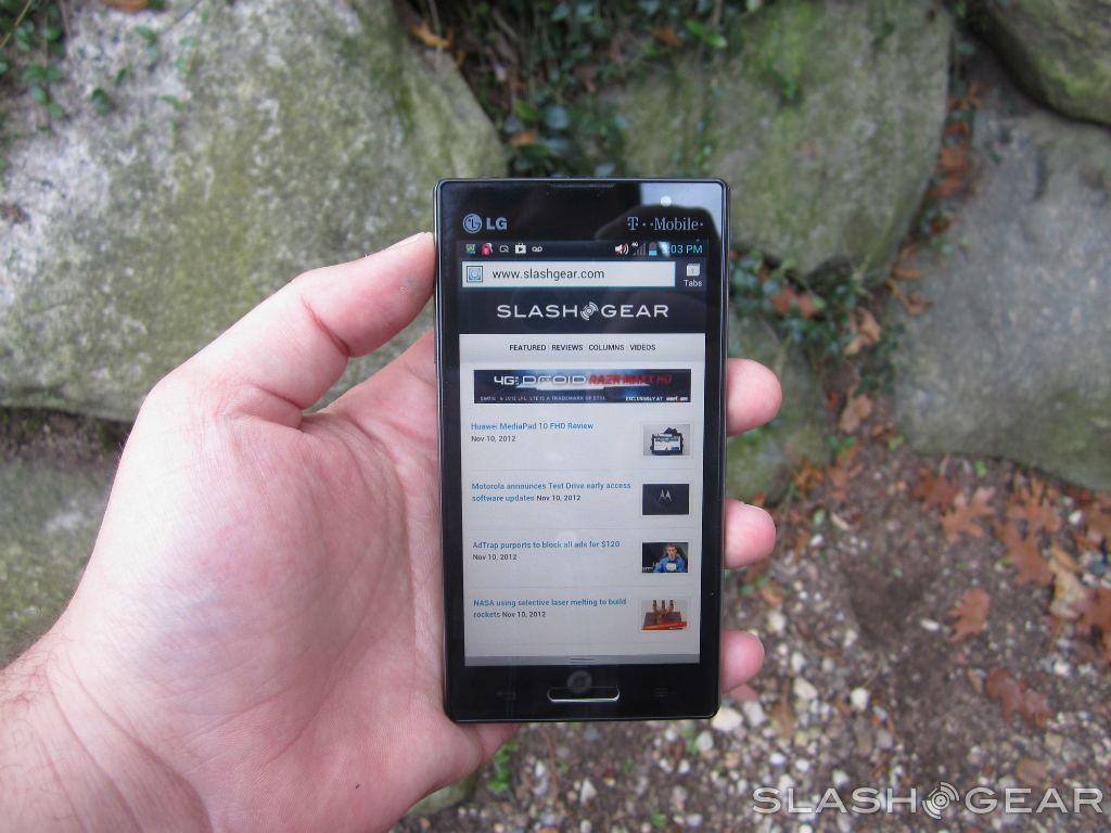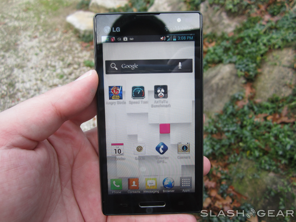 Typically a lightweight and thin design would lend to a fragile feeling, but not with the Optimus L9. It feels like a well-constructed device, and though I'm not willing to begin hurling it across the room, it does feel like it can take a bump or two. There's also Gorilla Glass 2 covering the display, so it should stand up pretty well against scratches.