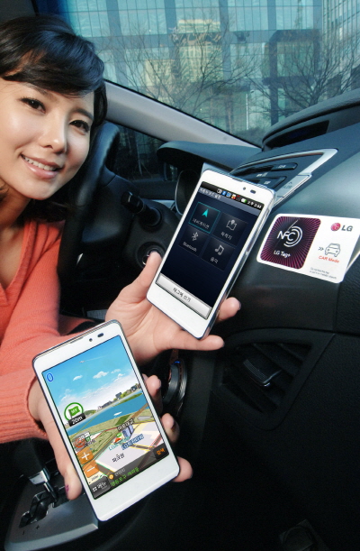 So, a CAR Mode tag can automatically run the in-car UI, with an oversized interface for easier use of the Optimus LTE Tag while it's docked in a windshield cradle. LG preloads its own Tag+ (or Tag Plus) app to handle reading the NFC tags, and three sheets of stickers will apparently be included in the box with the smartphone. Other possible uses will be switching into Office mode, as well as turning settings on and off for things like WiFi and muting the ringer, but users will also be able to program tags themselves.