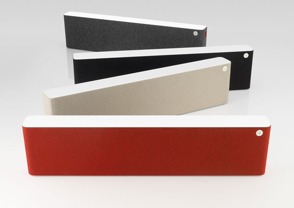 The Lounge comes in several colors and while it will play music wirelessly, it also has a 3.5mm input for other devices. The speaker is recommended to be placed against a wall so the sound reflects out into the room. Inside the speaker are a single 8-inch inverted woofer, dual 4-inch ceramic midranges, and a pair of 1-inch ribbon tweeters. It has 150W of total power with 25W to each tweeter and 25W to each midrange. The Lounge measures 8.7-inches H x 40-inches W x 4.7-inches D and weighs 27 pounds.