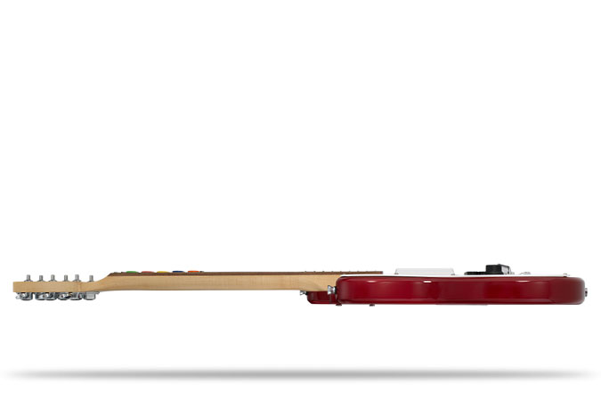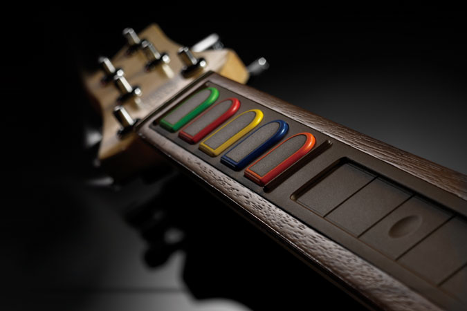 The fret board buttons use the same rubber dome technology as Logitech's keyboard range, offering both reliability and minimal noise. There's also a touch-sensitive neck slider, which can be used in-game as well as in Guitar Hero World Tour's new Music Studio to create an even wider away of sounds.