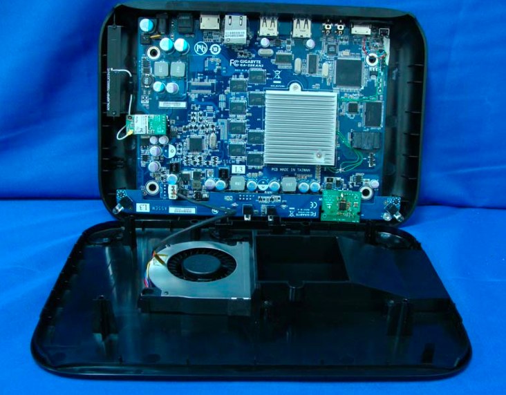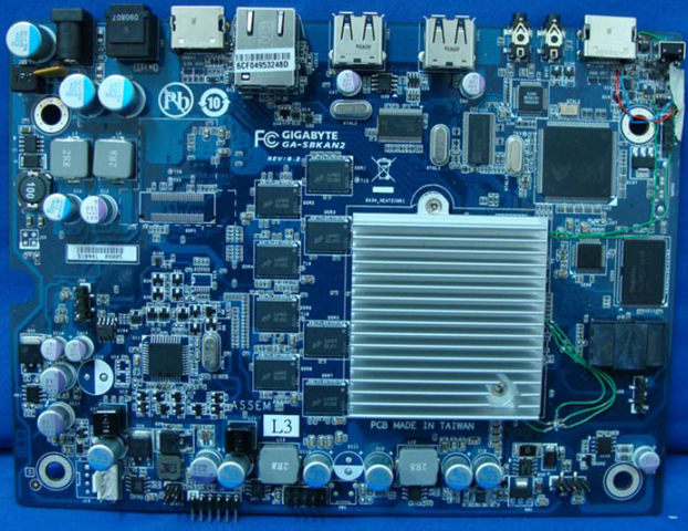 Interestingly, the mainboard found inside the Logitech Revue – marked the Gigabyte GA-SBKAN2 – shares the same name as another Gigabyte IP-STB board spotted early last month by SemiAccurate, though the component layout is different and the earlier board has three USB 2.0 ports rather than the Revue's two. Gigabyte had been showing the board as part of a white-box IP-STB solution, leaving open the possibility that we could see another Google TV system with similar specifications to the Logitech unit using pretty much the same hardware.