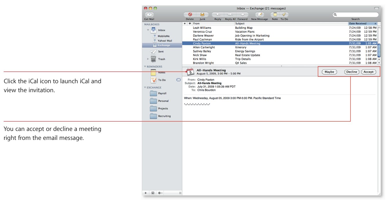 Beyond that, it works just as you'd expect from an Exchange system, and it leaves us wondering exactly what sort of market Microsoft Outlook might arrive to when it launches in late 2010. The combination of Mail, iCal and Address Book – not to mention their integration with OS X – makes the extra functionality Outlook provides a tough sell, though we imagine most users will acquire it as part of a full Office installation rather than as a standalone product. Still, there's now no reason why third party applications are required merely to clinch Exchange compatibility.