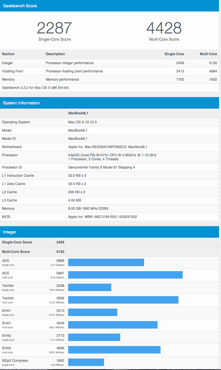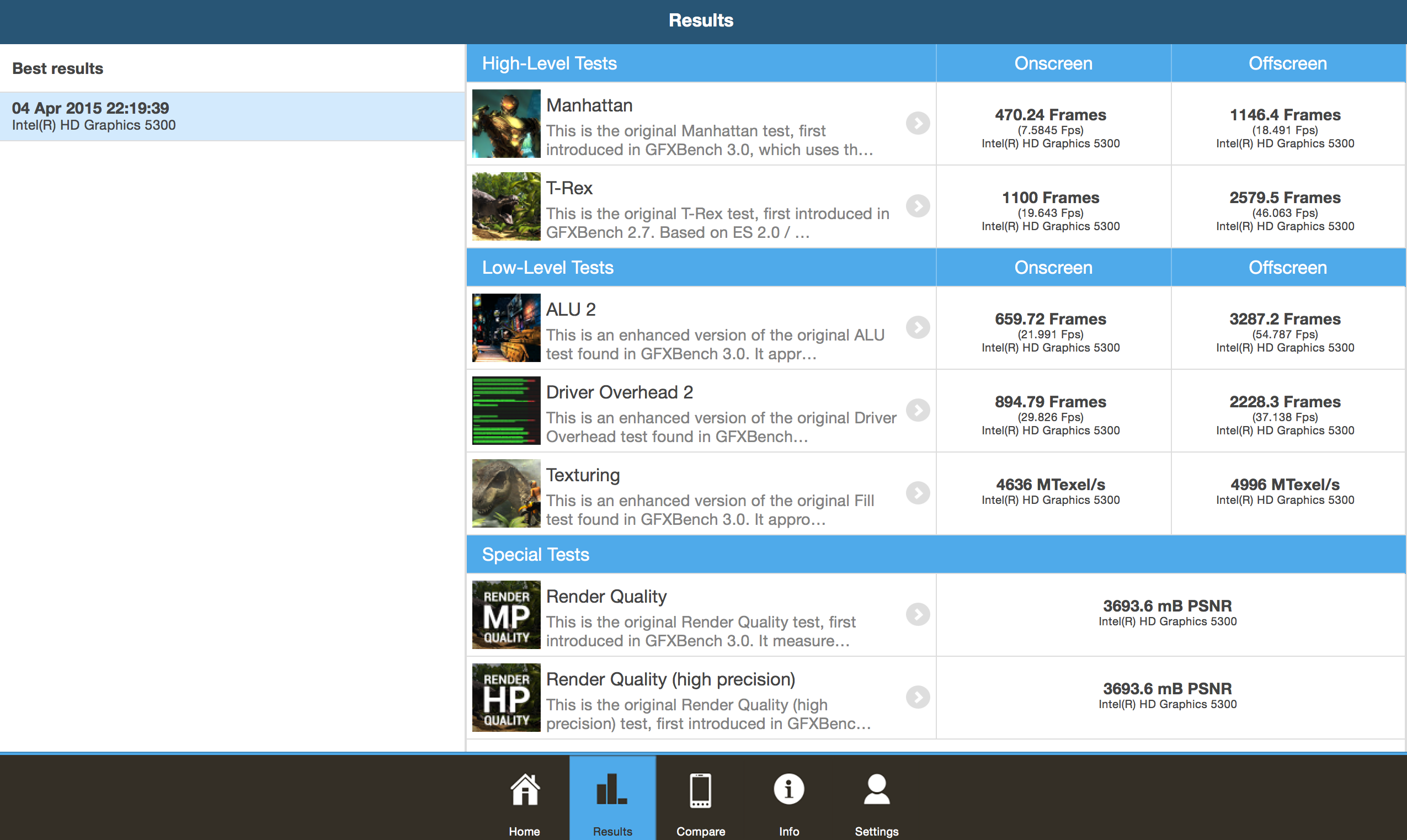 In contrast, a new 2015 13-inch MacBook Pro – with a 2.7 GHz Core i5 processor, Intel Graphics 6100 GPU, and 8GB of memory – took 4 minutes 12 seconds to process the same clip. Roughly half the time, true, but still enough performance from the MacBook to surprise me. (I'm yet to get my hands on the latest MacBook Air, and will repeat the tests on that when I have access for a full comparison.)