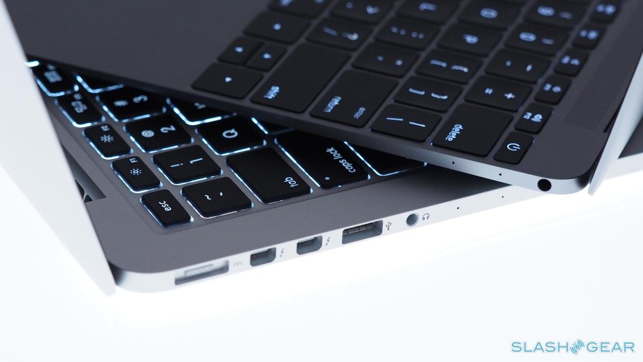 What's interesting is that you don't, at first glance, necessarily see the layout as being full-size. That's because of the larger-than-normal keycaps, 17-percent bigger than on the MacBook Air, leaving narrower tracks between them. They're lower-profile, too, and while it may be the definition of a first-world-problem, the fact that this means they don't leave greasy key indentations and smudges on the display is a huge improvement. It's hard to say if this was a happy accident or planned, but kudos to Apple either way.
