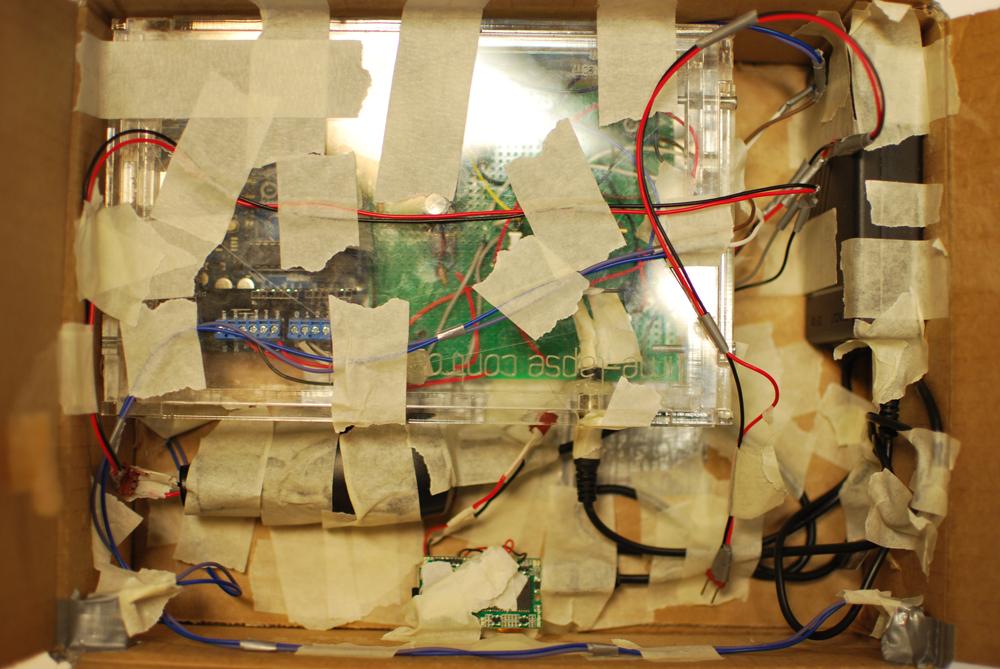 While he didn't provide too many details about how be created the hardware, he did publish a few pictures of the setup, including the camera/circuit by itself, in the box, and finally the box all wrapped up and reinforced with duct tape. He doesn't mention how long the journey was, but we're guessing it was probably longer than a single day, which adds up to quite a bit of recording time.