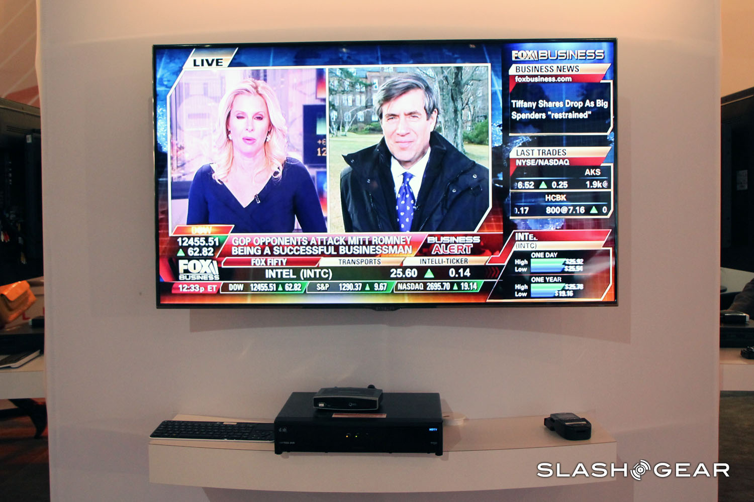 The system works like current Google TV boxes from Logitech and Sony: it incorporates content from a cable or satellite box like the one on display, then controls, records and manages it. The system also aggregates web content via apps, like YouTube, Netflix, Revision 3 and the like. The prototype hardware was shown running the latest version of Google TV with Android 3.2 Honeycomb, so it has access to apps on the Android Market.