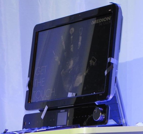 Medion have unveiled a new all-in-one PC, the oddly named Akoya "The Touch" X9613. Based around a 24-inch multitouch-capable touchscreen, rather than stuff the X9613 full of nettop components Medion have taken the far more sensible route and used Intel's 2.0GHz Core 2 Quad Q9000 CPU with 4GB of RAM, NVIDIA's GeForce GT 240M graphics card and a Blu-ray drive. Newgadgets were on hand to grab a live demo video, which you can see after the cut.Video demo after the cut