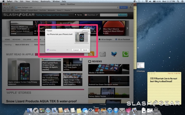 Seven months ago Apple launched OS X Lion; now, 19m copies later, it's ready to preview OS X Mountain Lion. The next update for Mac isn't expected to hit the Mac App Store for download until this summer, but SlashGear caught up with Apple to find out the top ten – or in fact eleven – headline features of Mountain Lion, as well as get our hands on early version of the developer preview. iMessage jumps to OS X, along with Game Center and Notifications, and plenty more, as Apple narrows the gap between iPad and Mac. Read on for all the details.
