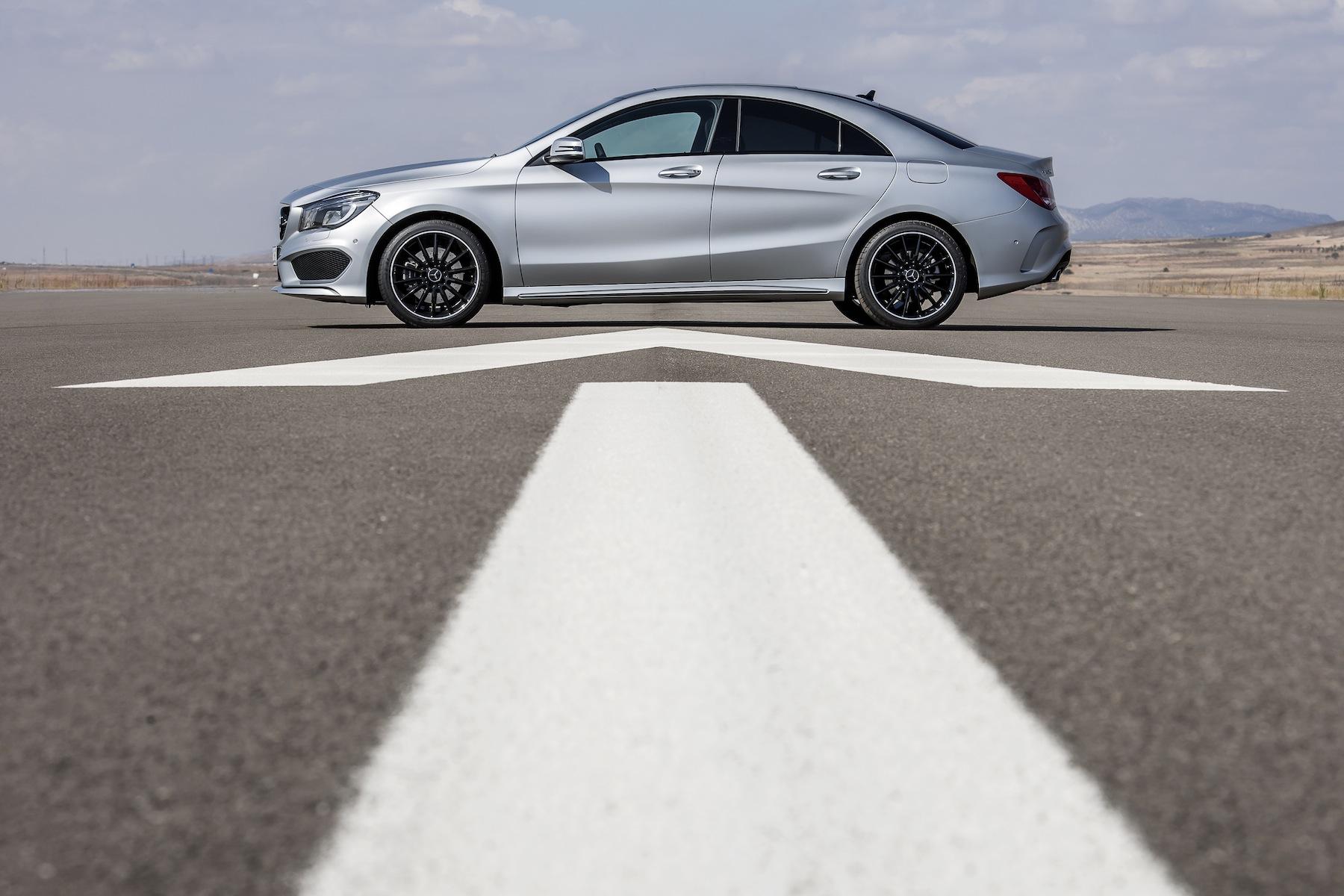 Under the hood, the range kicks off with the CLA 180, packing a 1.6 litre petrol engine with 122HP and a 0-62 mph dash in 9.3s, topping out at 130mph. Those looking for more speed can step all the way up to the €38,675 CLA 250 ($52,000), with a 2.0 litre petrol engine mustering 211HP and a 0-62mph time of 6.7s; that pushes the top speed to to 150mph. A €37,991 diesel CLA 220 CDI ($51,000) manages 170HP and 0-62mph in 8.2 seconds, and shares the CLA 250's 7G-DCT dual-clutch auto transmission. The other models get Mercedes' 6-speed manual.