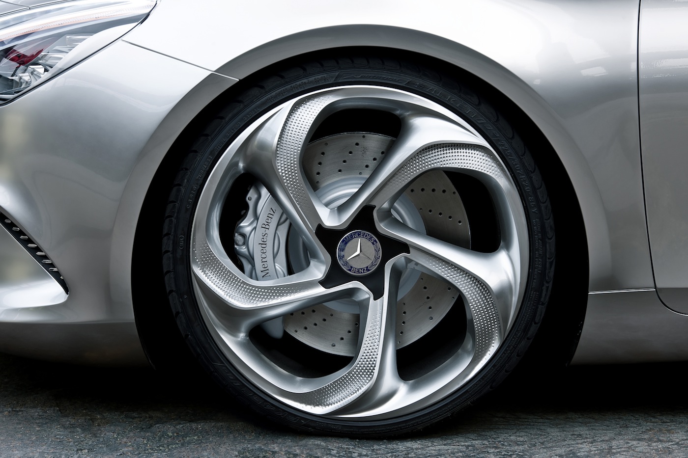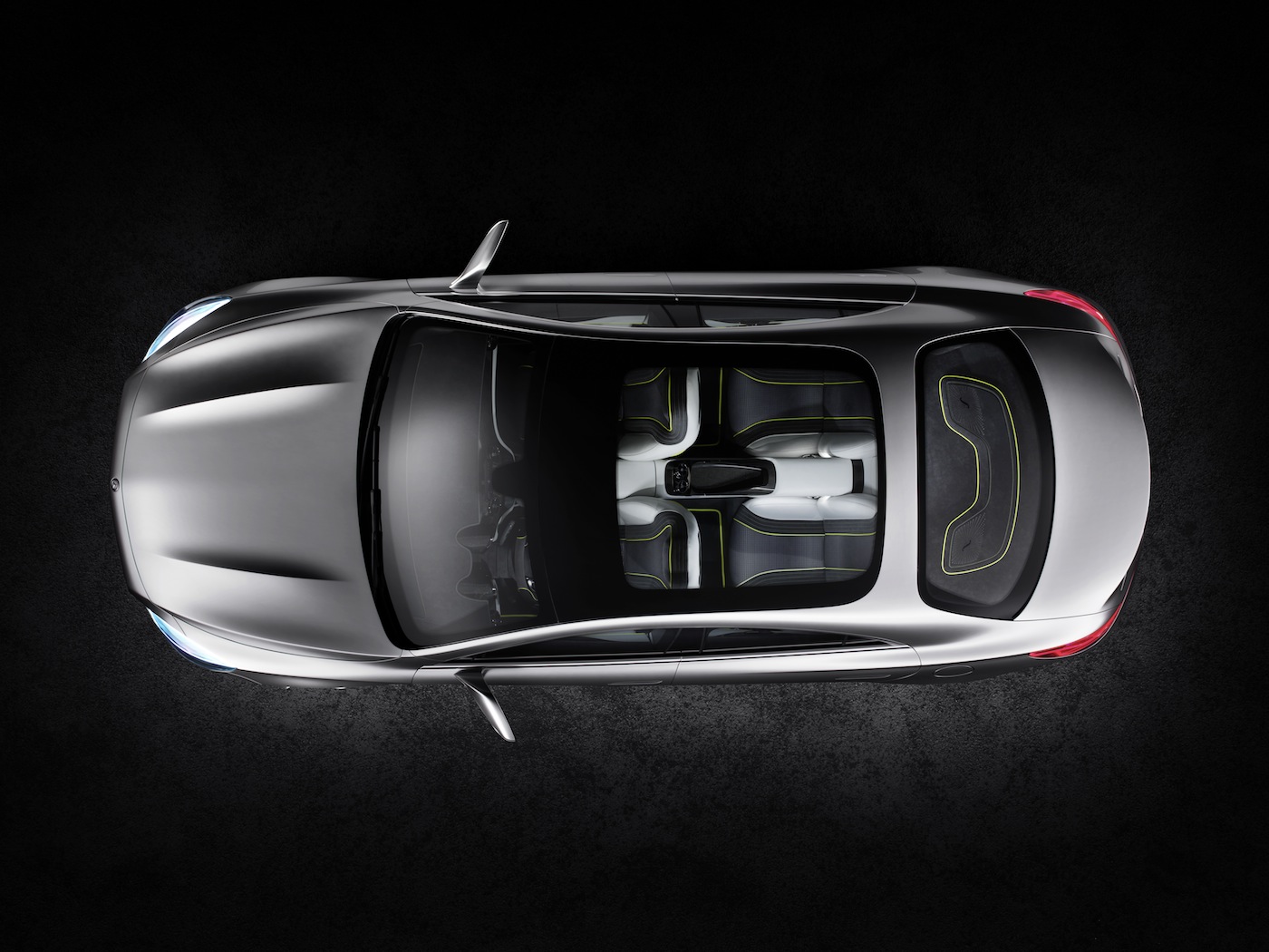 "In standby mode they shine red" Mercedes gurgles of the indicators, "when they are activated, the individual elements light up one after another in a "Mexican wave" effect." Current concept flourish-du-jour, the panoramic glass roof, is also present and correct, as are strangely "rippled" door mirrors.