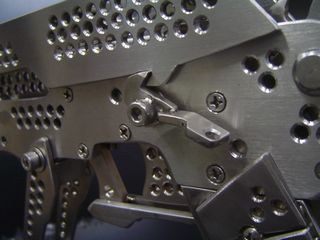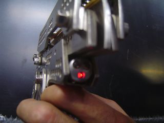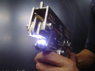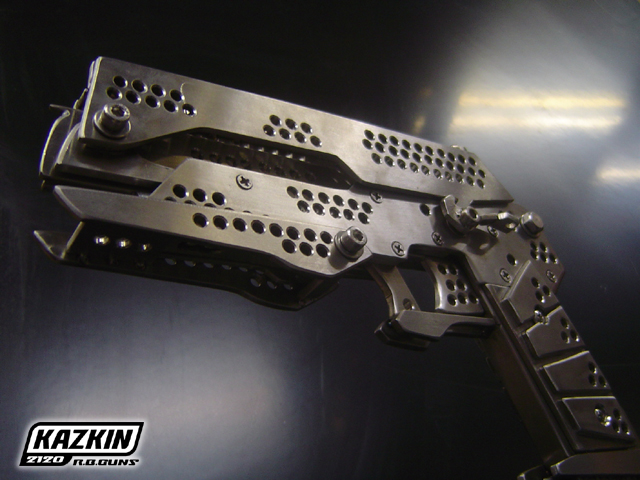 Made from 3-5mm stainless steel, the gun weighs around 1.5kg and has a retractable stand that apparently makes holding and aiming it easier. There's also a laser target and an LED light.