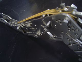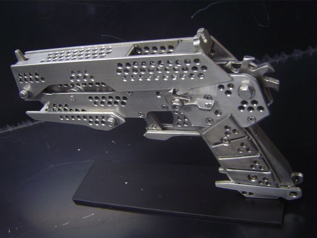 It only fires rubber bands, but you'd be forgiven for thinking this fan-made replica of Snake's pistol from Metal Gear Solid 4: Guns of the Patriots was a lot more dangerous. Hand-made, it loads by cocking open the top section and threading elastic bands – up to twelve – onto the ratchet wheel; flip off the safety catch and you can either fire them one at a time or in rapid-succession.Check out the demo video and image gallery after the cut