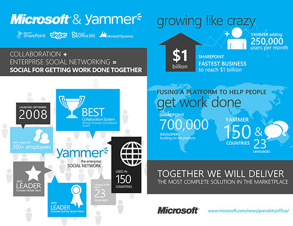 This deal will have Yammer continuing to develop its standalone service, with Microsoft in the very near future aiming to accelerate the business-based social network's adoption with bundles that include Microsoft SharePoint, Office 365, Skype, and Microsoft Dynamics.