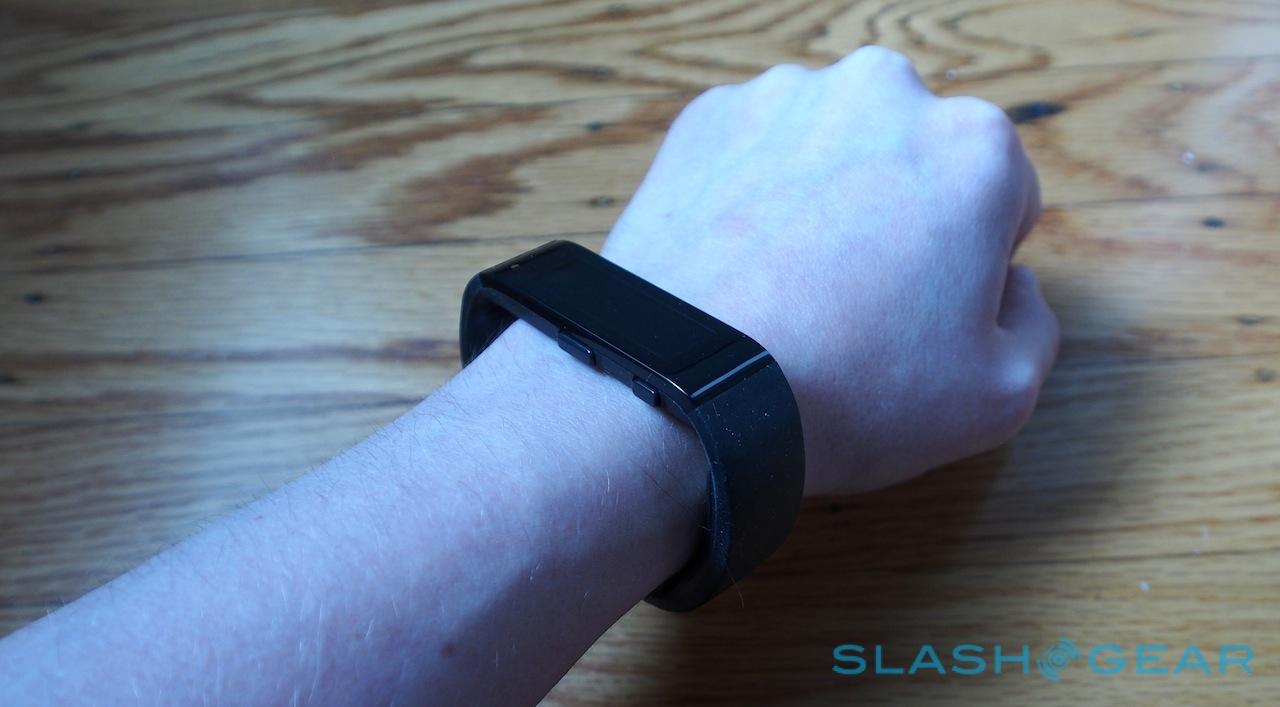 What it's not is forgettable. The top section feels just a tad too broad, protruding either side of my (medium-wearing) wrist that little bit further than would feel entirely ergonomic. The rubber is soft enough, but the band as a whole is bulging with tech, and the whole thing is more like a bracelet than a form-fitting strap.