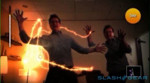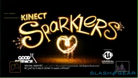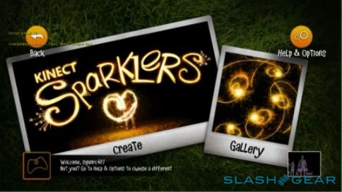 Finally, and perhaps most impressive, is Kinect Sparklers. This takes a photo of you and your background, and then allows you to trace a digital sparkler around yourself, before looking at it from various different angles as if in 3D. We'll know all the details after Microsoft's press conference in a few hours time.