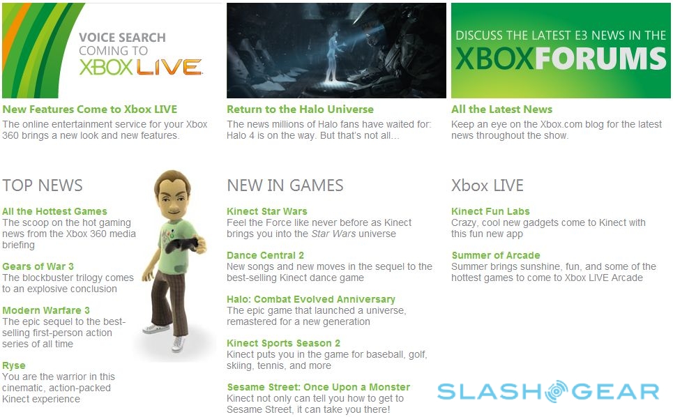 Microsoft's E3 2011 announcements have been prematurely revealed, and the company only has itself to blame. The Xbox E3 page spilled the details for a few short moments, but enough for us to grab some screenshots: not only is Halo 4 confirmed as on its way, along with Dance Central 2, Kinect Star Wars and other titles, but new Kinect Fun Labs games too. More details and shots after the cut.