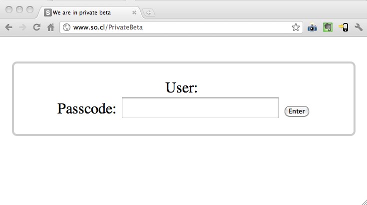 That move is unconfirmed, since Microsoft has been careful to batten down the hatches on so.cl and make sure nobody unofficial can gain access. The site presents nothing more than a message saying "We are in private beta" and a password-protected login; however, according to a check on the domain itself, Microsoft Chile registered the URL as far back as 2009.