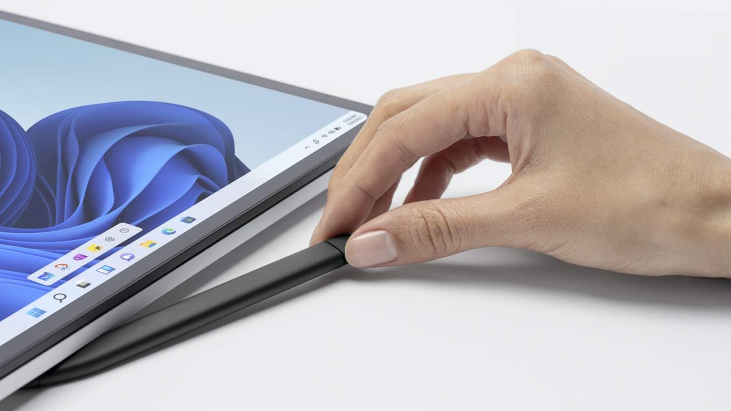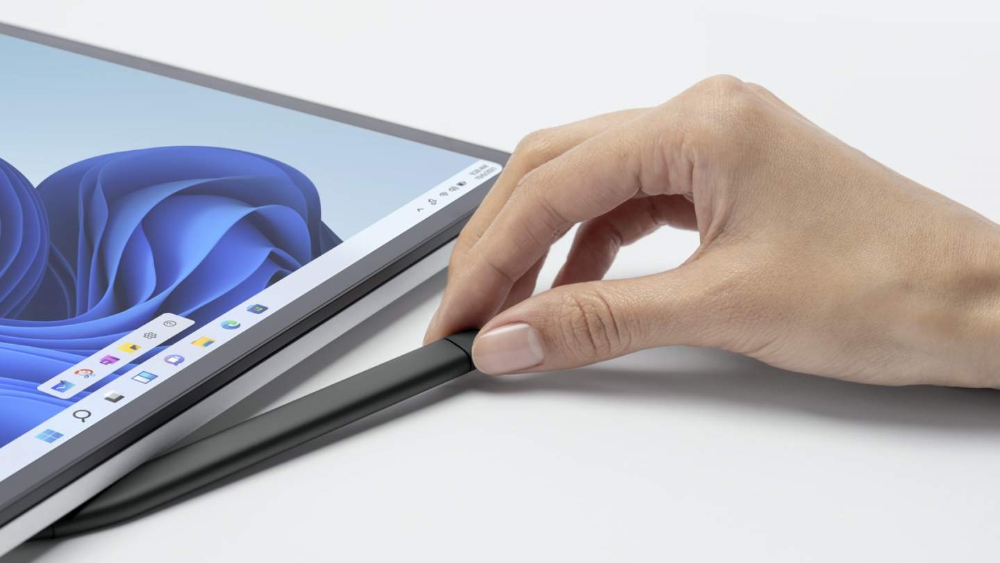 That way, it can be more readily used with the new Surface Slim Pen 2. That recharges in a dock above the keyboard, and has a haptic motor inside for Windows 11 app feedback as you ink and annotate. Keeping the Surface Laptop Studio going, meanwhile, is a choice of either a quad-core Intel 11th Gen Core H35 i5-11300H CPU or a Core H35 i7-11370H. The former has Intel Iris Xe Graphics; the latter gets a choice of NVIDIA GeForce RTX 3050 Ti GPU with 4GB of dedicated GDDR6 memory or – in the commercial SKU – an NVIDIA RTX A2000 GPU with 4GB of its own memory.