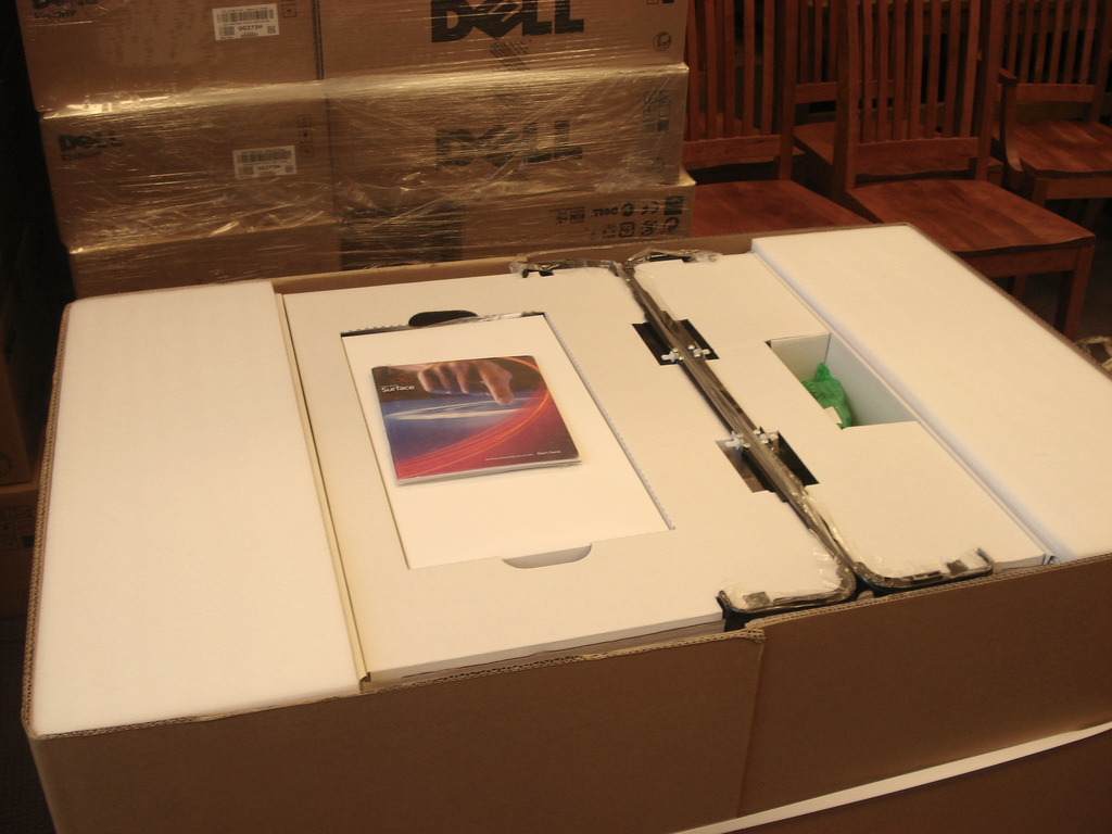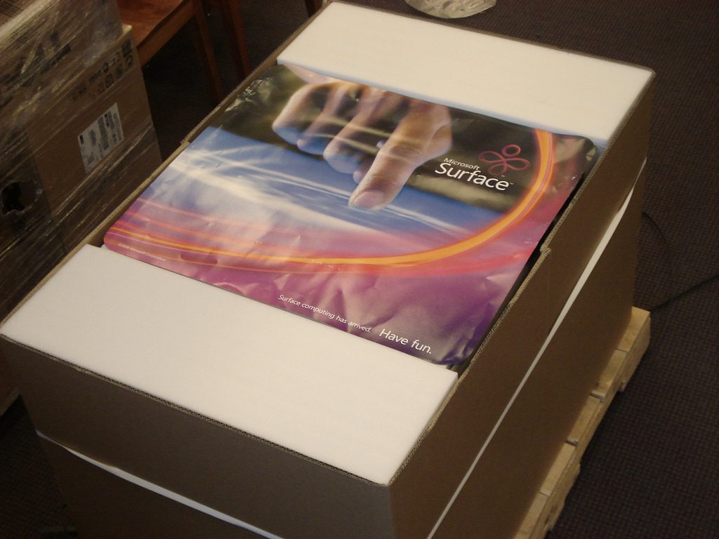 We love a good unboxing here at SlashGear, and somehow it's all the more exciting when the box is big enough to require its own pallet. Darien Library have just taken delivery of a new Microsoft Surface multitouch table, and John Blyberg shot some photos of unboxing it from crate to touchscreen playtime.