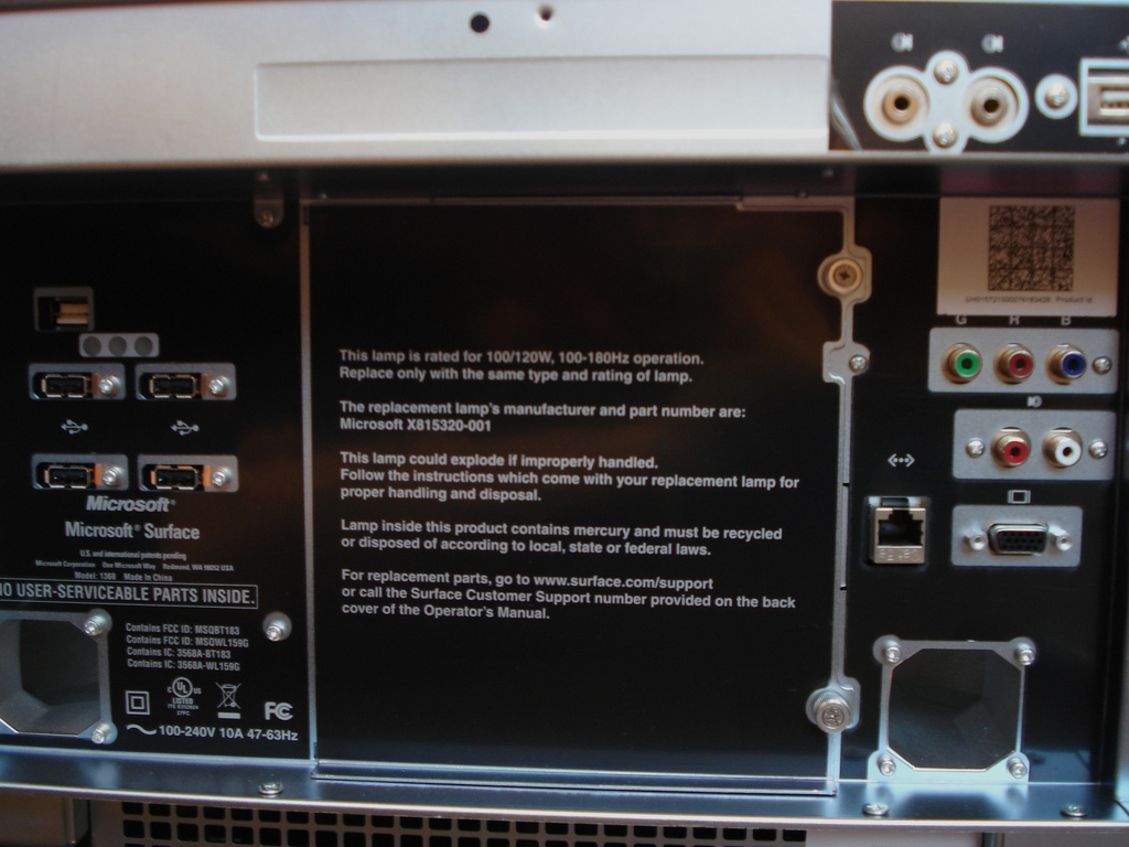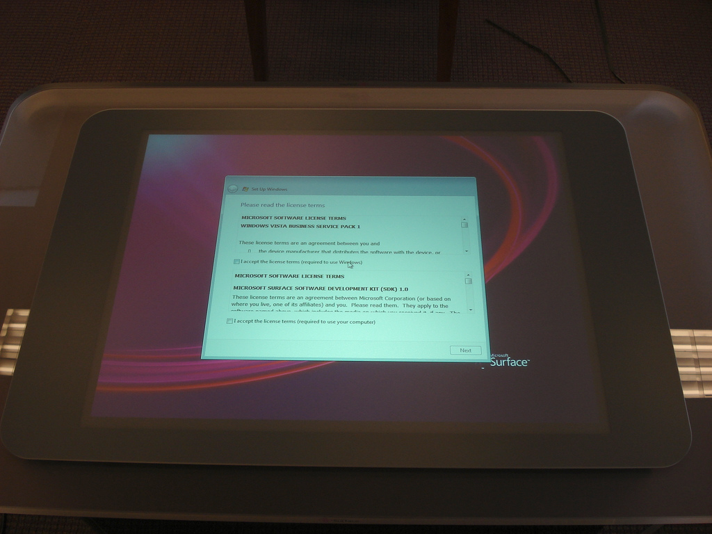 Interestingly enough, John's photos show the input panel for the Surface, something I can't recall seeing before. Buyers get four USB ports, component video input, stereo audio input, VGA and a wired ethernet connection. The whole thing runs Vista behind the scenes; there's no telling which user icon John decided to choose during the setup.