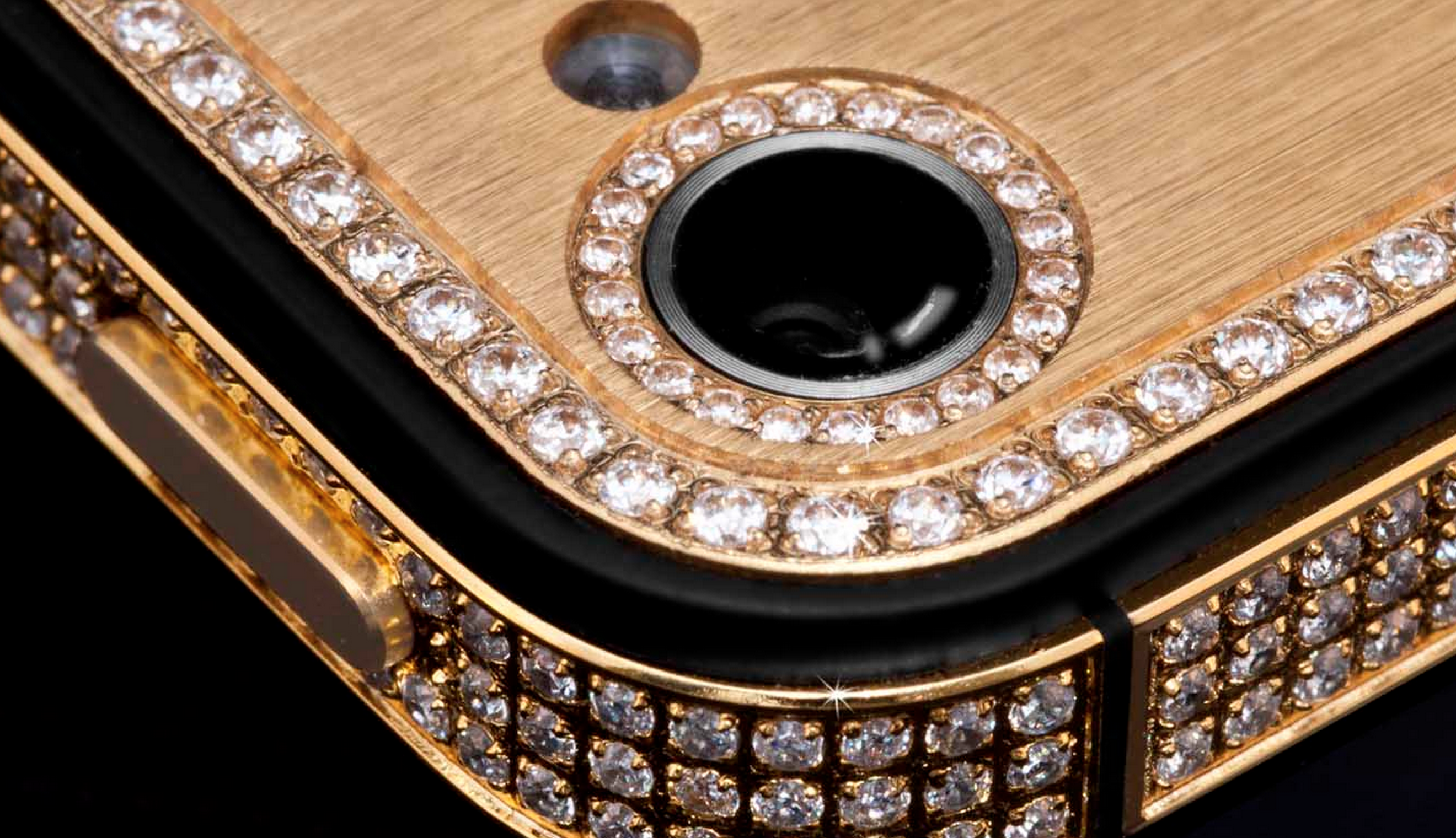In the million-dollar iPhone 5 you'll find a bezel "handmade" of 24-carat-gold. You'll also find 700 "flawless" VVS diamonds, in total equalling more than seven carats. Around the back you'll also find a 24-carat-gold panel.