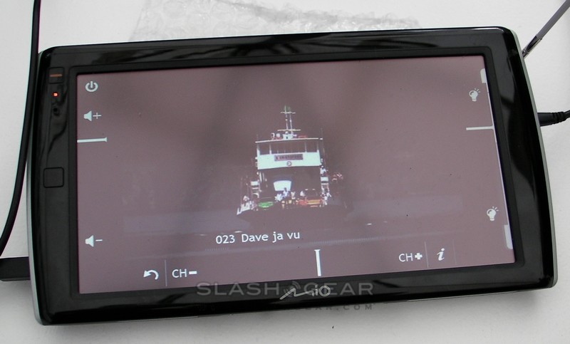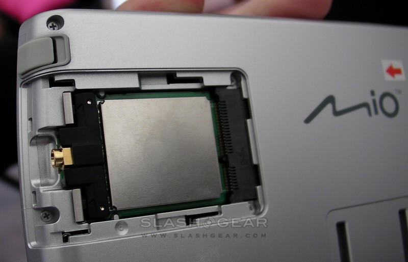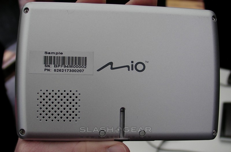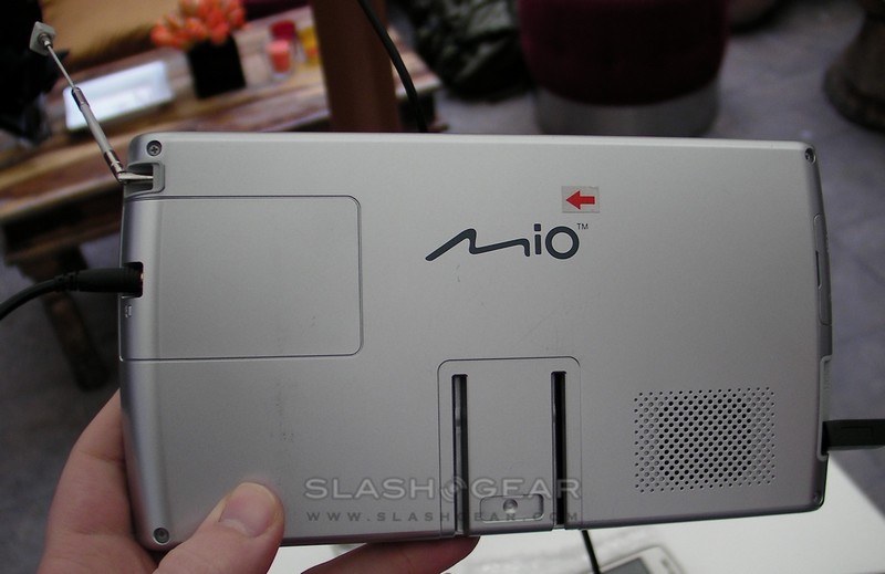 As for the larger, 7-inch PND, that – and a 4.7-inch version – will launch in June or July, with integrated digital TV tuners for the UK market. US versions are unconfirmed, but since the TV tuner is modular there's no reason to suspect that it couldn't be swapped out for a US alternative. Mio expect the 7-inch model to retail for under £350 ($534) while the 4.7-inch would come in closer to £200-£250 ($305-$382).