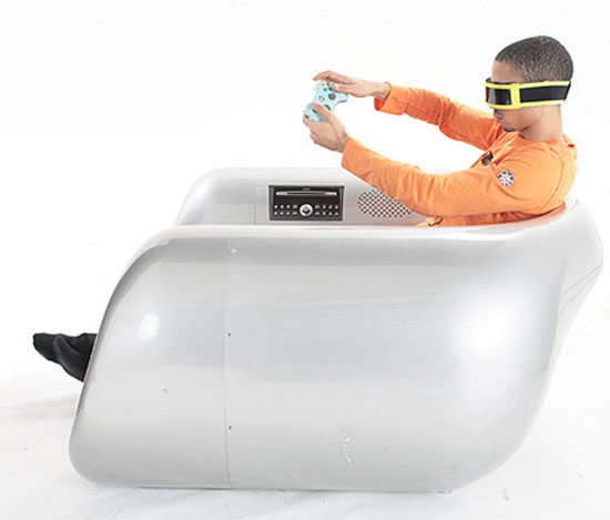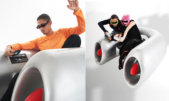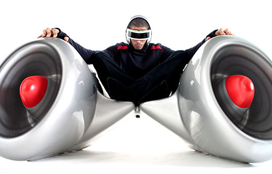 In an ideal world, this would be a jet-propelled butt-cradle. However it's not, it's actually a combination chair and music system by designer Gianni Pedone, part of the Morfonauta collection going on show at Milan Design Week 2009.