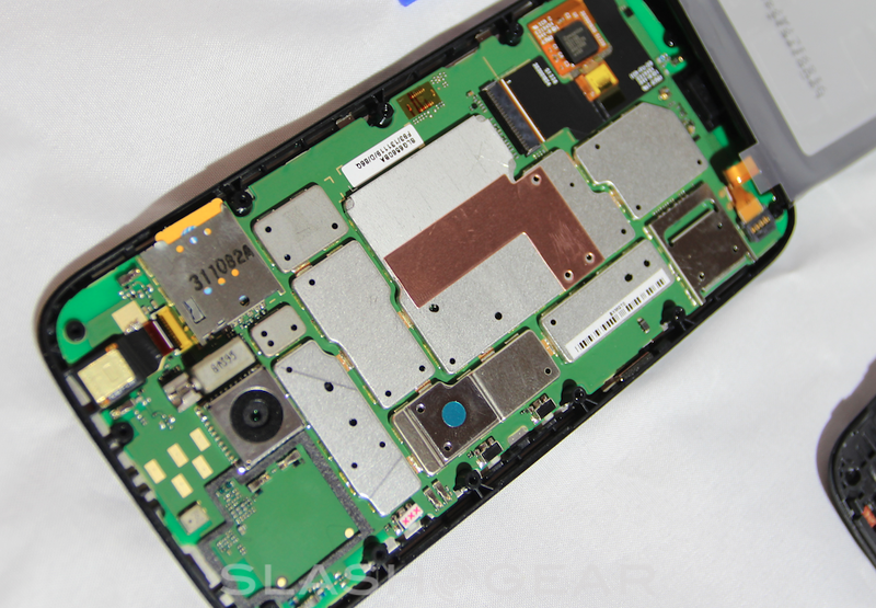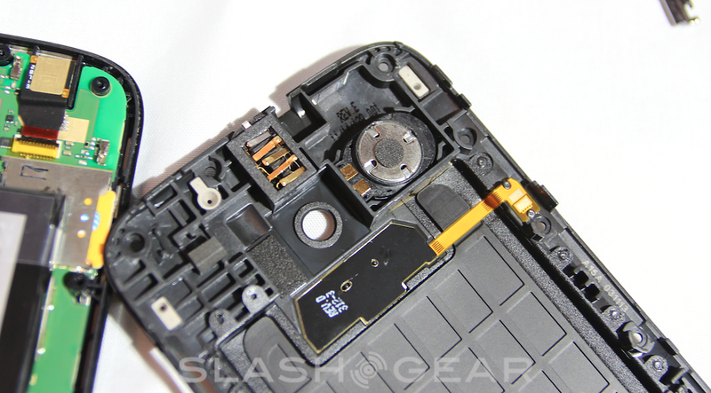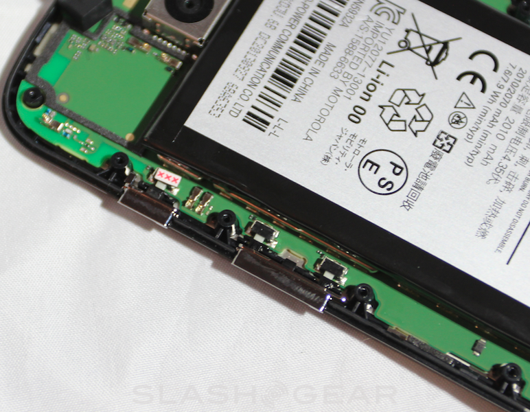 The version of the Moto G you see above is based in Germany, while the images you see below come from a friendly anonymous contributor to SlashGear showing the USA-based iteration of the device. Essentially the same innards can be seen, and from what we're looking it, it seems that the shape of the component is mere coincidence.
