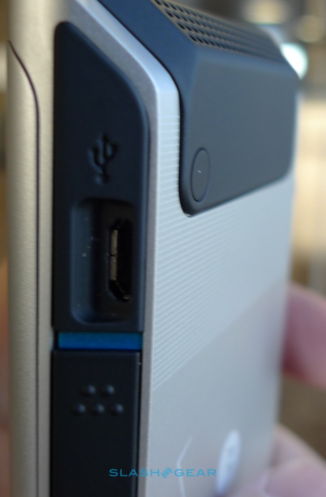 Other connectivity includes access to Verizon's EVDO Rev.A 3G network, WiFi b/g and Bluetooth 2.0+EDR, together with a microUSB port and AGPS. The 1,400mAh Li-Ion battery is rated for up to 389 minutes talktime or 443 hours standby; in practice, with MOTOBLUR doing its social networking checks and Exchange push-email turned on, you'll be recharging the DEVOUR nightly as with most other smartphones. The side-loading compartment also means that there's unlikely to be an extended battery option, though given the DEVOUR's target audience that probably isn't too big a deal.