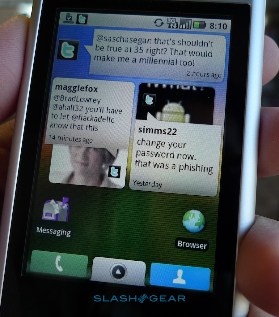 Perhaps more pointedly, MOTOBLUR remains flawed in its execution. Despite complaints about the earliest devices, minor issues – though issues which third-party apps generally get right – continue to litter the system. The perennial bugbear of Twitter "@" mentions being treated as regular messages rather than flagged up as with Direct Messages makes monitoring your tweets more frustrating than is the case in, say, Seismic or Twidroid. Motorola continue to add social networking services to MOTOBLUR, but it's proving a relatively slow process.