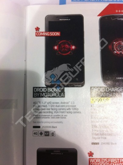 We have been pretty excited around here at the thought of the Motorola Droid Bionic. The smartphone has surfaced in a few leaks so far including some pics of the hardware earlier this month. The Droid Bionic has leaked again this week when it turned up in what appear to be leaked photos of coming Best Buy ads and it is listed as "coming soon." I wish the ad had a firm launch date.