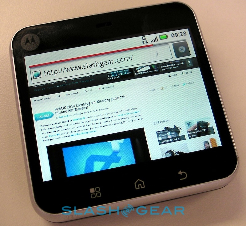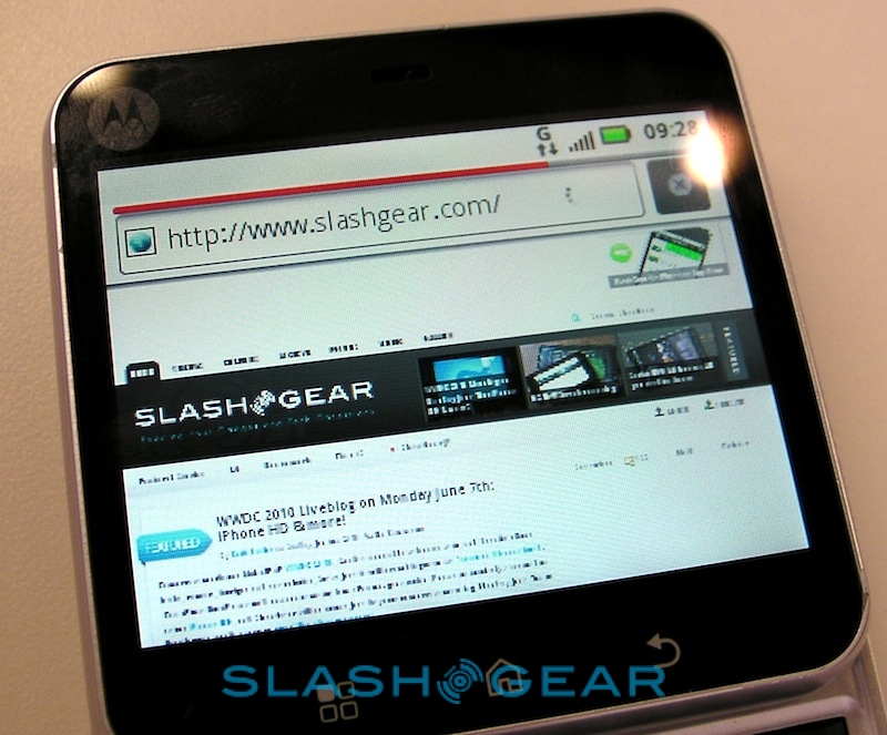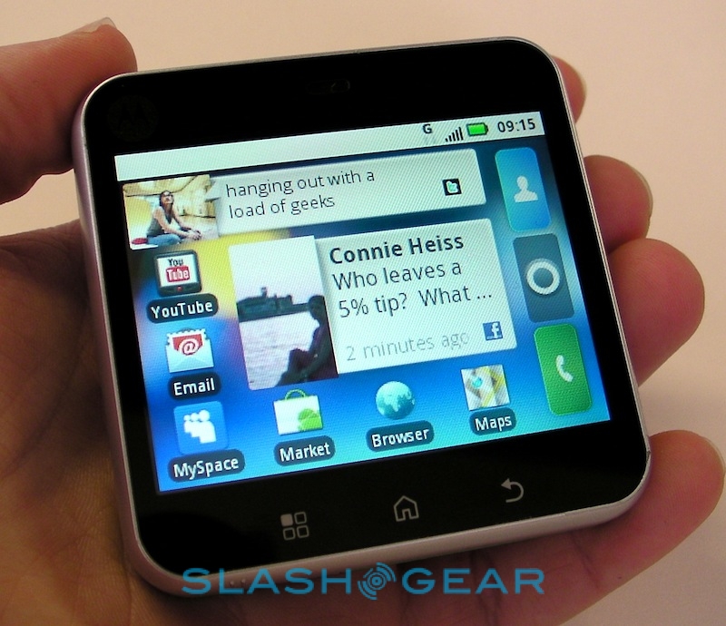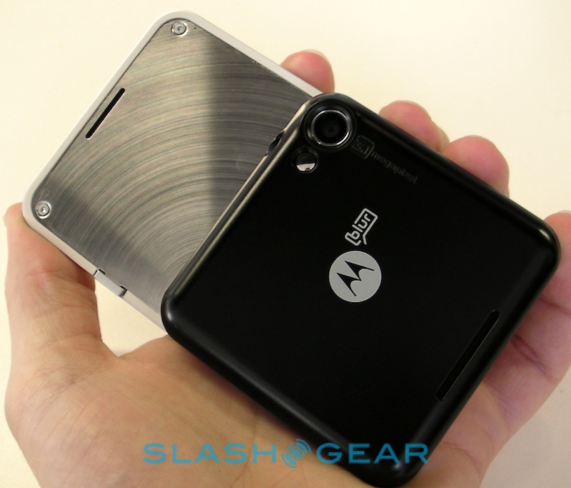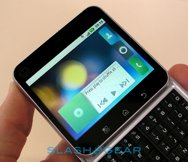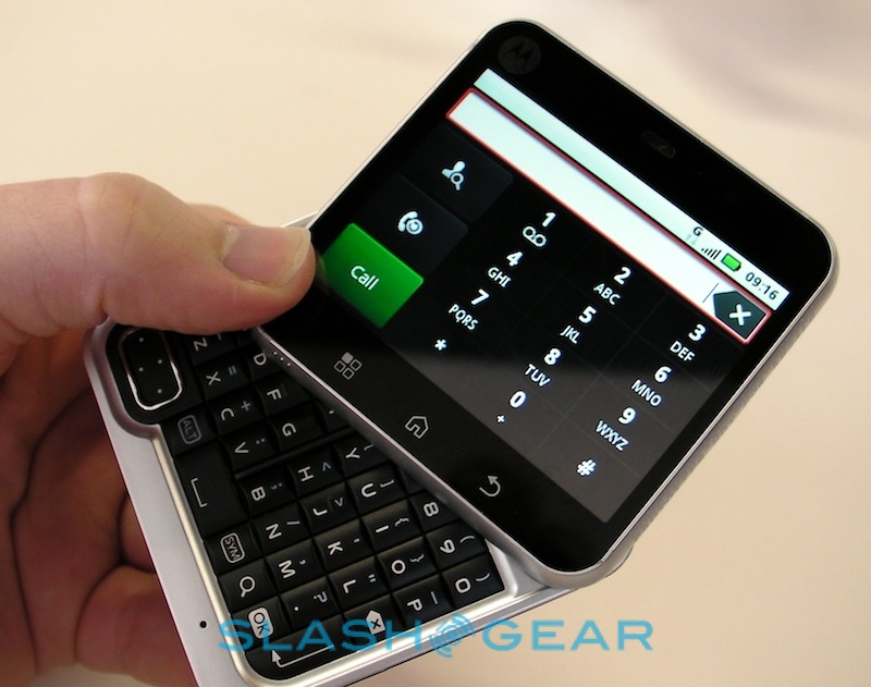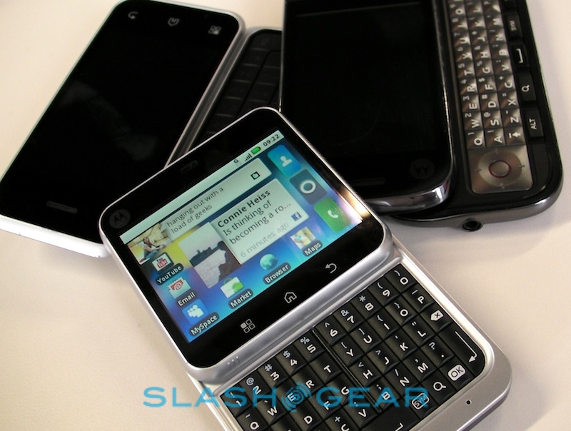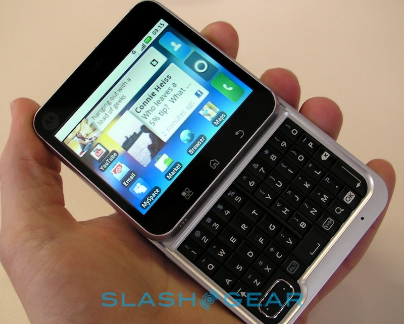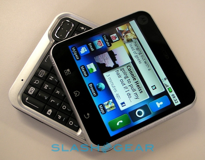 It wasn't just the Motorola XT720 we grabbed some playtime with this morning; we also caught some hands-on time with the company's diminutive FLIPOUT, announced last week. In some ways the FLIPOUT is more of a surprise than the XT720 proved to be, mainly because it's actually very usable despite the palm-sized dimensions. The QWERTY keyboard is reasonable to type on, and the rotating screen section may be the spiritual successor to the Sidekick's spring-loaded display when it comes to absent-mindedly fiddling with your phone.Video hands-on after the cut