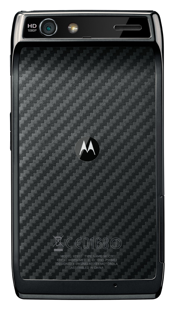 The Motorola DROID RAZR is now confirmed to sport a 4.3-inch advanced qHD display, which boasts a high contrast ratio and richer color saturation than the iPhone 4S. The display is fully covered with Gorilla Glass and the chassis is indeed made with Kevlar and splash-proof. It features a 1.2GHz dual-core processor, 1GB of RAM, and an 8-megapixel rear-facing camera capable of 1080p HD video capture.