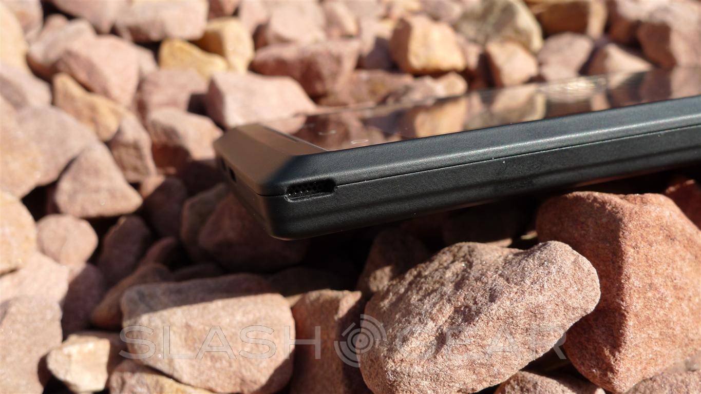 To quickly go over the hardware we have a 4.1" 480x800 resolution display, a 5 MP camera with VGA for front video chat, and single LED flash. The Triumph does have HDMI-out as well and this is all powered by a 1 Ghz Qualcomm Snapdragon processor. It also has 512 MB memory as well as an included 2GB MicroSD card for storage. The overall design is something you'll recognize right away if you've ever held a Motorola Droid or the Droid X as it features a very similar squared design as well as a extra soft touch coating on the back in matte black.