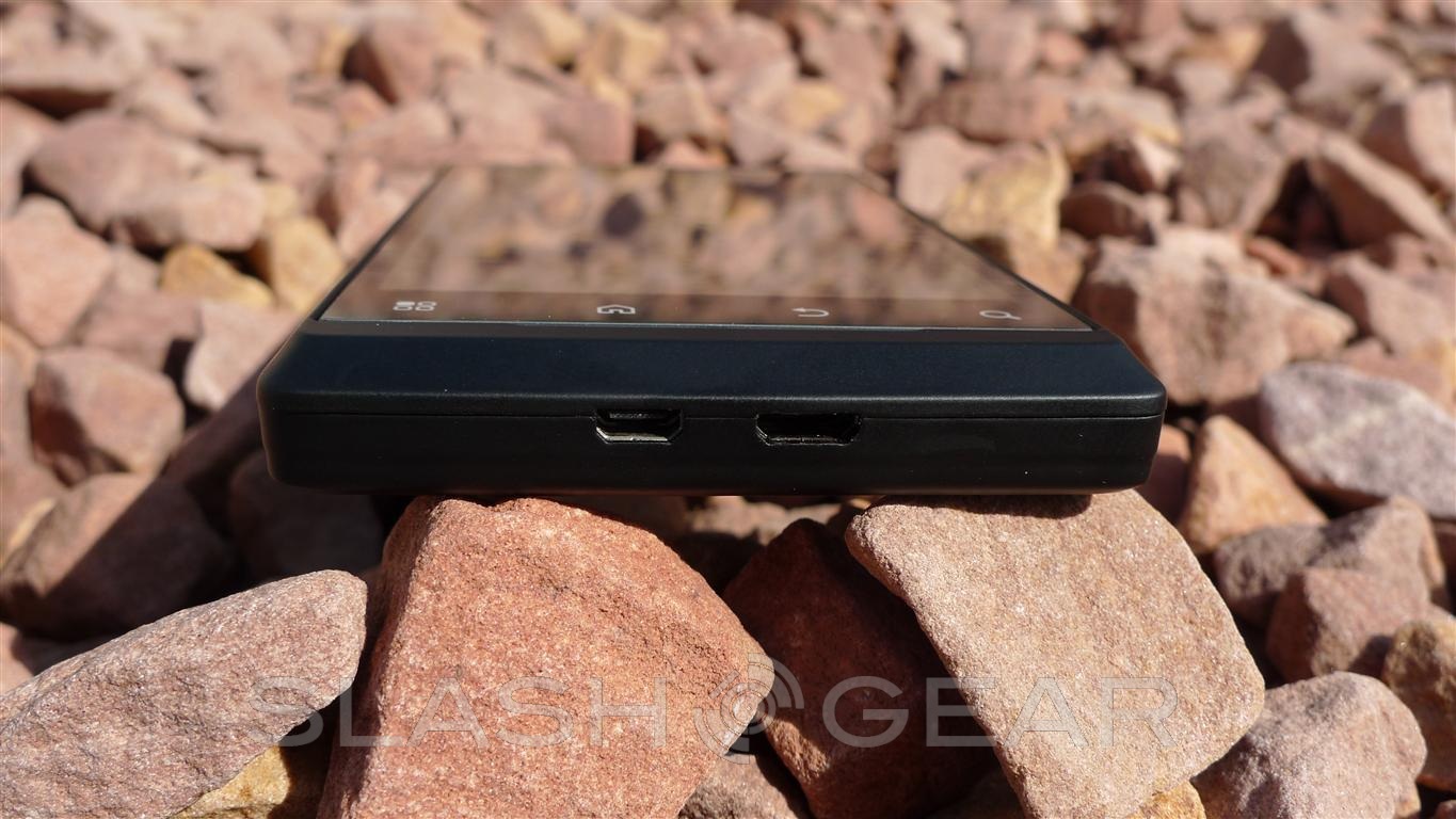 The Micro USB charging port and HDMI-out are nicely placed on the bottom of the device with the unlock/power button on the left edge of the phone versus the top. The power, volume rocker, and camera are all accented in an aluminum silver finish to make things look sharp. One big part of hardware I wanted to mention was what appears to be stereo speakers. The very bottom on each edge of the device is a decent sized speaker grill and sound comes out extremely loud and clear from both sides, the back cover doesn't come off or I'd do a little inspection. I wish all phones had the loud volume this phone does. My Sensation sounds like a tin can in comparison.