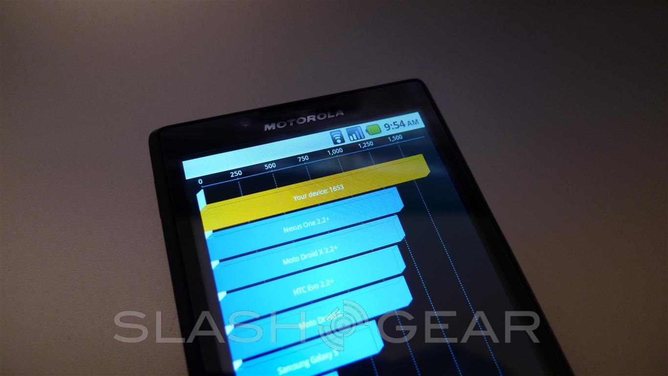 Also running a few benchmark apps the Motorola Triumph was right where I expected with Quadrant scoring around 1700 give or take. Comparing that with similar spec'd devices it sounds just about right as we have a 1 Ghz CPU here and it's single core.