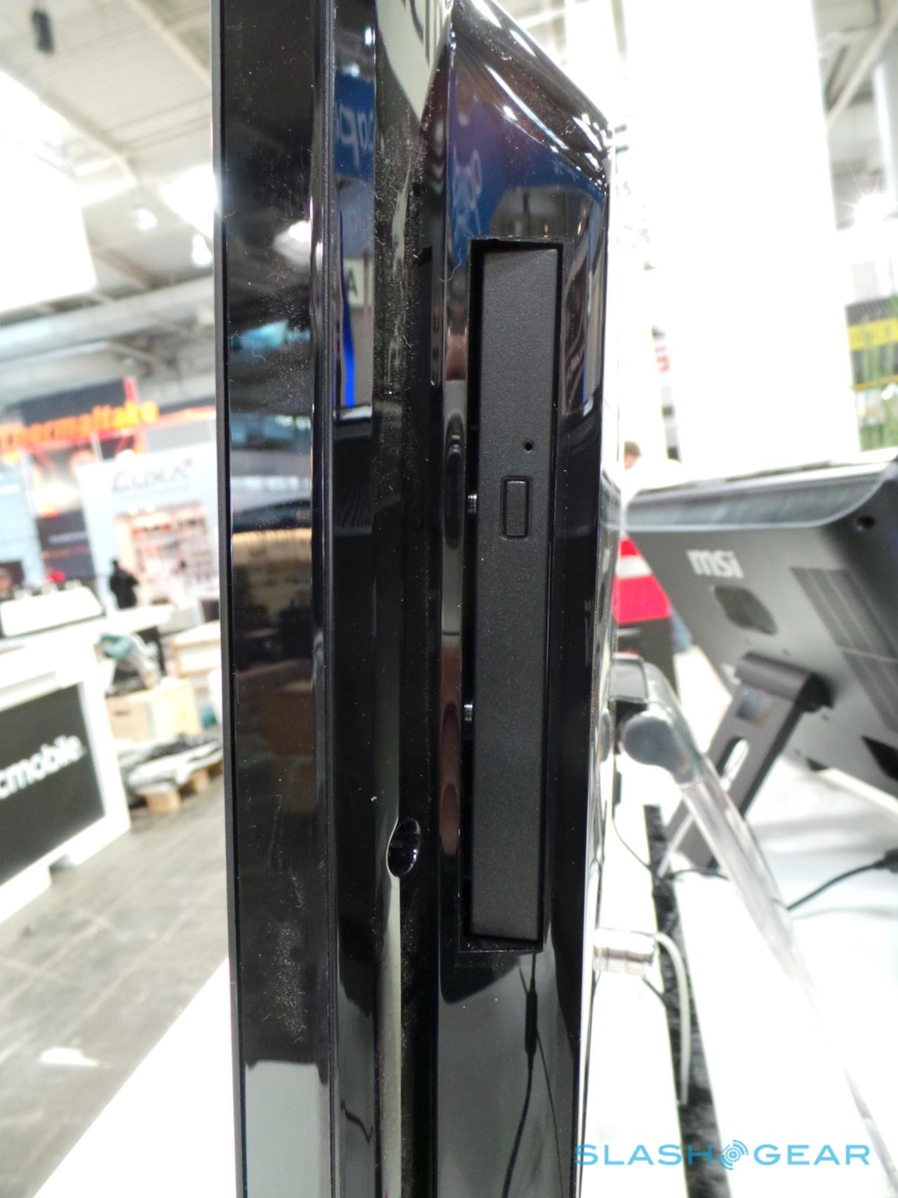 Finally, on the right edge there's a tray-loading optical drive. MSI throws WiFi in the box too, though if you want the 10-point multitouch display you'll have to pay extra; as standard, it's a regular Full HD screen. Either way, you get a welcome anti-glare finish which we found did a decent job of avoiding the show-floor lighting.