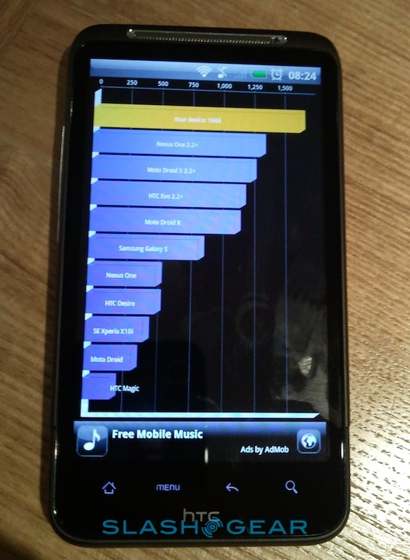 We ran Quadrant on both phones, an Android app that tests overall performance of a smartphone and then assigns it a single score, having gauged not only core processor speed but I/O and 3D graphics abilities. The HTC Desire HD scored 1,666, putting it well ahead of other Android 2.2 devices like the Nexus One and Motorola DROID X; however the T-Mobile myTouch 4G scored 1,846, almost 200 points more.
