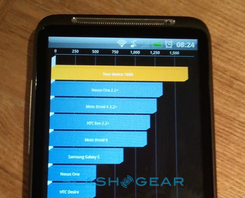 T-Mobile's myTouch 4G is currently going through the rigors of testing in the run-up to its full review, but preliminary benchmarking is already suggesting that it's the fastest Android smartphone around. What's curious, however, is the performance difference between the myTouch 4G and another recent HTC smartphone with identical core hardware, the Desire HD we reviewed earlier this week. On paper, both handsets have the same latest-gen 1GHz Qualcomm Snapdragon MSM8255 processor paired with 768MB of RAM; in testing, the myTouch 4G is coming out significantly ahead.
