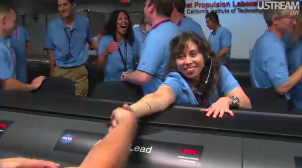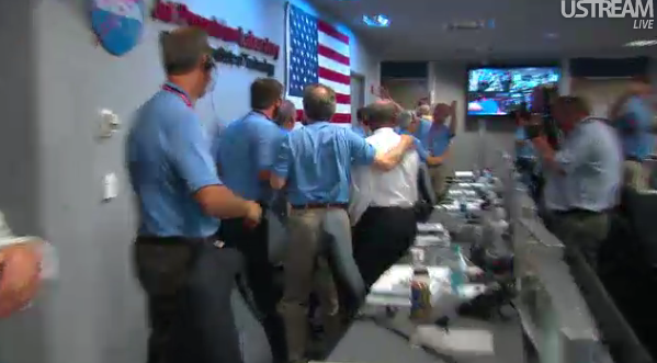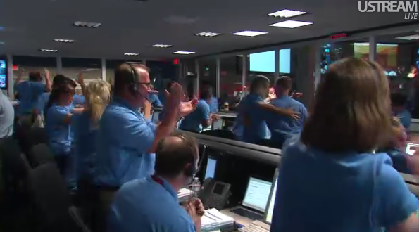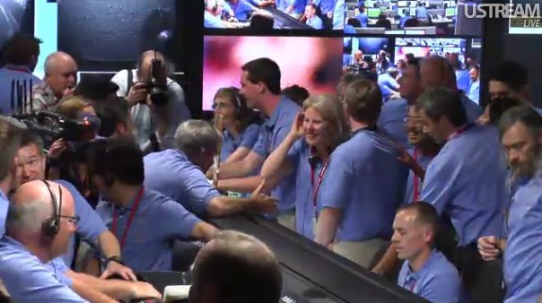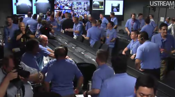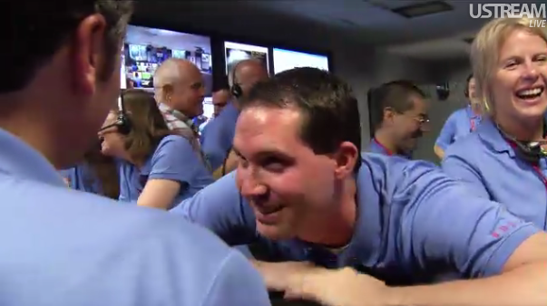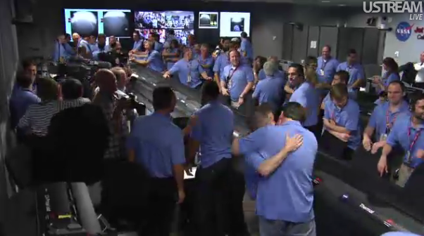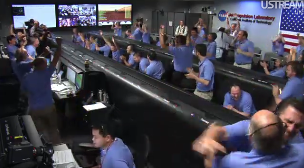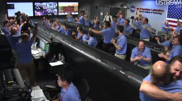 Needless to say, the cheers got louder and more joyous each announcement of a plateau. "We are in powered flight. 500 meters from planet. Stand by for skycrane. 40 meters altitude. Skycrane has started. Expecting final cut shortly." Each announcement became more exciting.