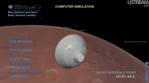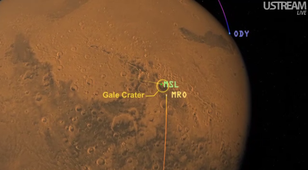 The entire sequence of events went exactly as planned as NASA live-streamed the entire event via their own set of feeds pushed through USTREAM. Of course one of the most interesting subjects surrounding this whole event was the delay between when the ship nears the atmosphere and when the actual rover touches down on the planet. Three ships have moved toward, past, and/or into Mars, those being named MRO, Odyssey, and MSL. The MSL unit is the one that contained Curiosity, and both Odyssey and MRO were sent to collect information about the landing of MSL's payload – again, Curiosity.