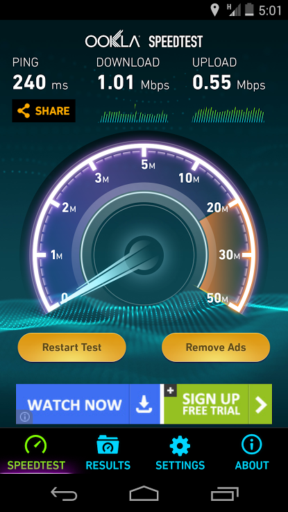 Also inside is a fully functional Miracast wireless display mirroring system as well as – and in a welcome addition over the previous-generation Nexus 4 – 4G LTE radios for connection to a variety of wireless carriers. There's currently no support for Verizon, however each of the other 3 of the top 4 major carriers in the USA have connected with no problems. Speed tests below should give you a basic idea of how fast you'll be rolling inside the USA.