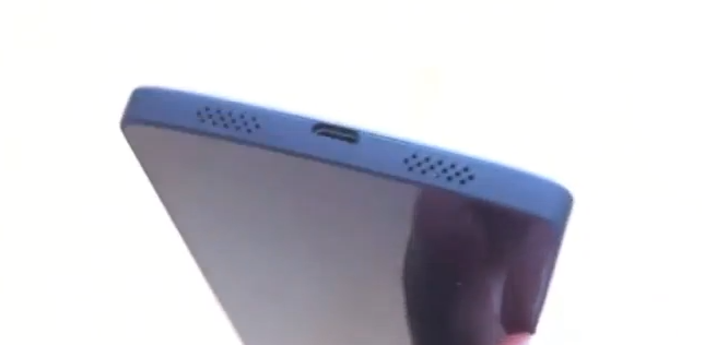 You'll also find some odd locations of parts here and there. There is a single SIM card slot on the upper right-hand side, a couple of speaker grills with big holes at the bottom, and a microUSB port at the bottom as well, right up against the back panel cover for the battery within. It's not yet known if this device will allow the full removal of its battery or not.
