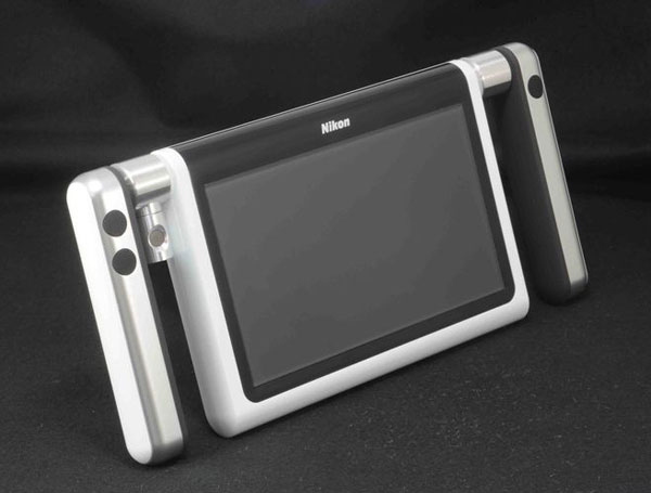 The next is an odd one called Nikon Multi-Ball. It looks like one of those cameras that you sit somewhere at a party and it takes photos all around the place to create a large scene. Exactly what it does or is we don't know. Nikon Rumors thinks it may be a 3D-panorama camera. There is also a prototype camera with a giant 6-inch screen and handles on each side. It looks really strange to me and presumably would be more like a media player able to show photos and video on a big screen than a camera alone.