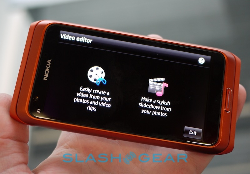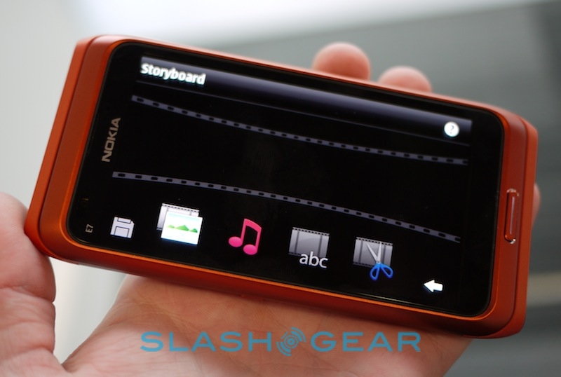 As on the N8, the E7 gets Nokia's preloaded video editing app (which can also be used to create photo slideshows), complete with transition effects, titling, optional soundtracks and even basic editing. Unlike iMovie for iPhone, it's not a cost-download either.