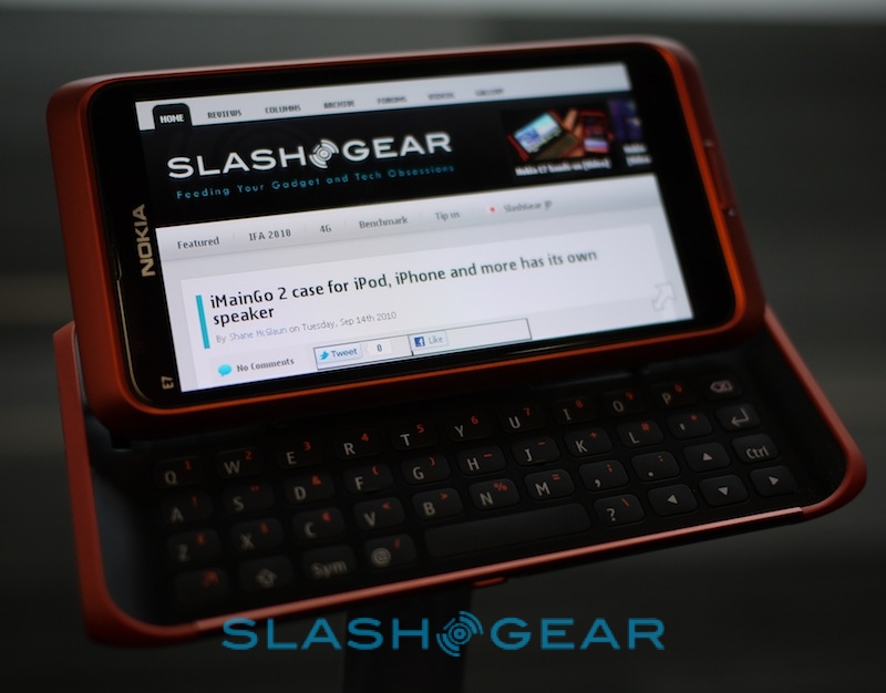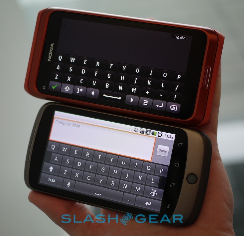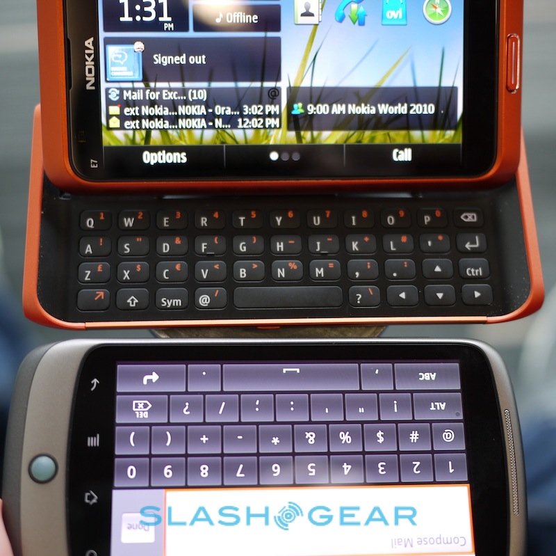 There's plenty to like about the Nokia E7. The display is brilliant, easily better than the Nexus One we compare it with in the gallery below, while the QWERTY keyboard is useful and tactile. Truth be told, if it were running Android we'd have no qualms at all about its mainstream success; with Symbian^3, as with the N8, there's a sense that the hardware is a few steps ahead of the software it runs. The company is still bullish about their smartphone sales, and still enthusiastic about Symbian and its future, but while the OS is certainly well polished (as Michael Gartenberg says, it's the best implementation of the platform to-date) it simply doesn't feel as fresh as its Android, iOS and webOS rivals.